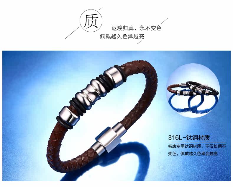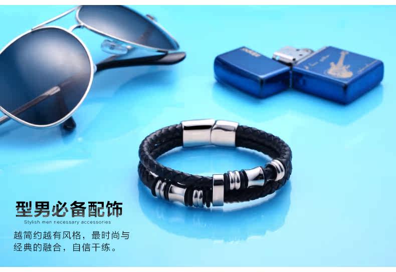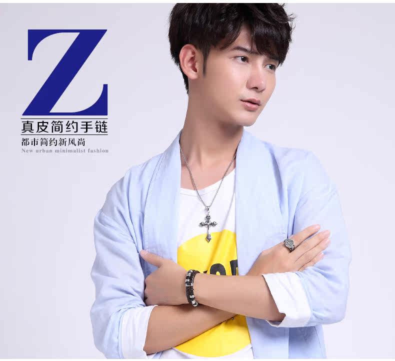 ?男士真皮手链日韩国韩版时尚手工编织皮绳 个性男式潮手环配饰品