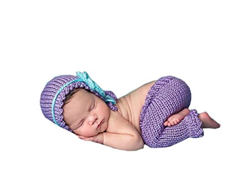 Title : Shinestar Newborn Baby Purple Flower Crochet Knitted Hat Pant Photo Props Costume