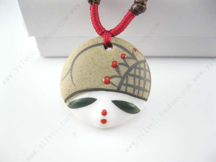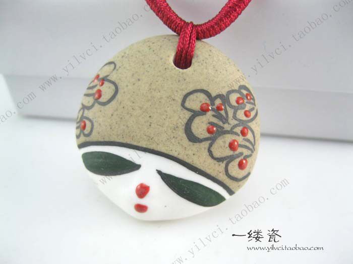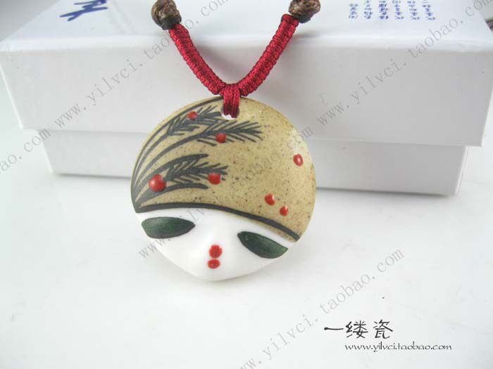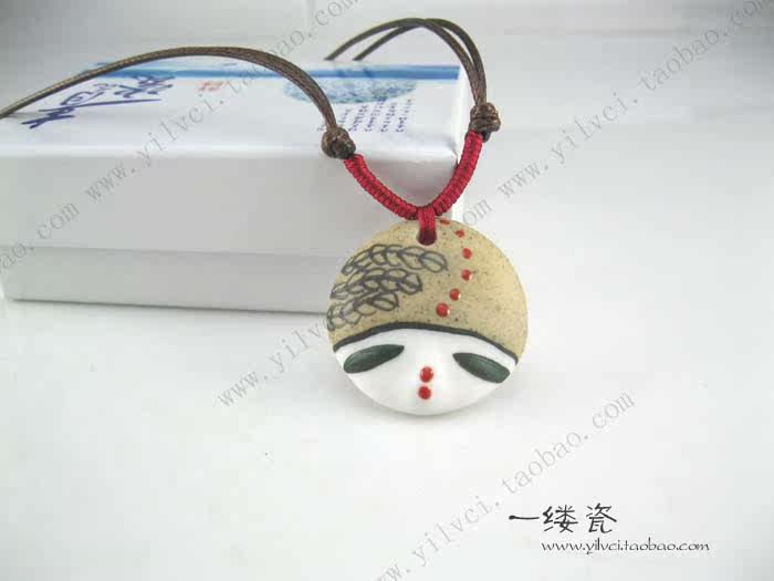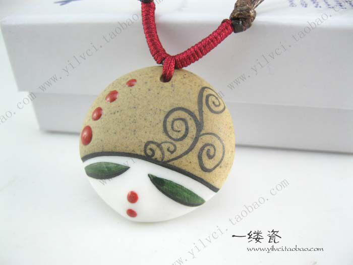 yiFine hand-painted porcelain dolls personalized beauty face pendant pendant jewelryStyle: EthnicMosaic Material: not setStrange new: Fabric Features? Process: Hand Ceramic0.75cm diameter 3.7cm thick chain around the perimeter of 40cm-75cm