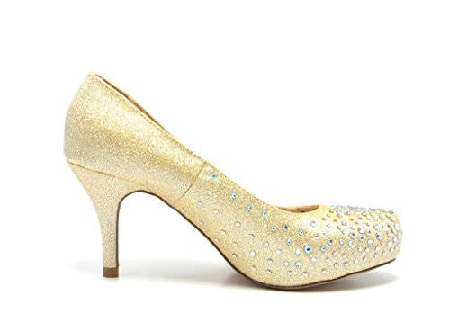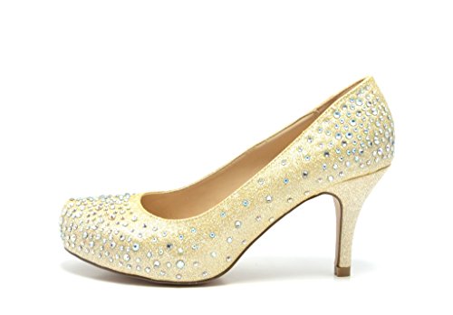| DREAM PAIRS ROMA-1 Women's Bridal Wedding Party Glitter Rhinestone Low Heel Platform Pump Shoes |