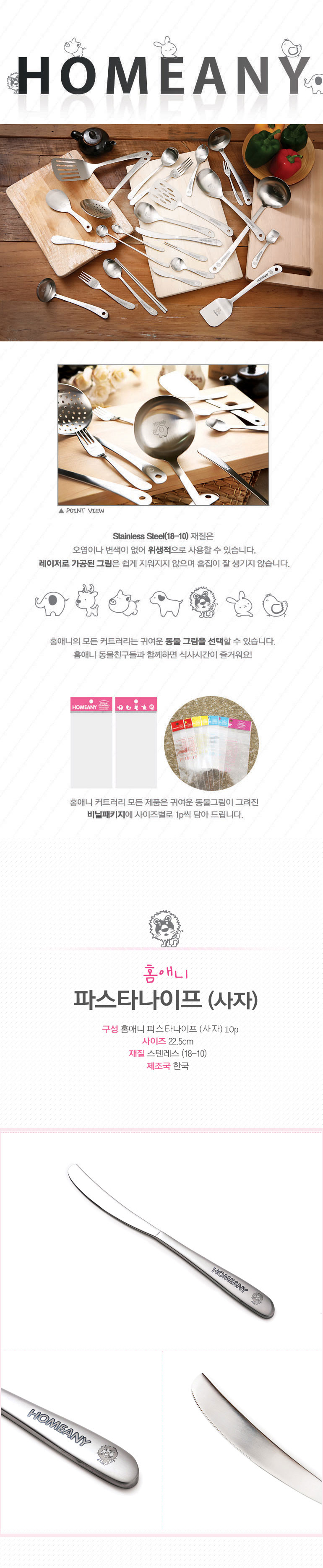 Spoon Set Animal Chick Pasta Knife 10P Cutlery Spoon Fork Stenter