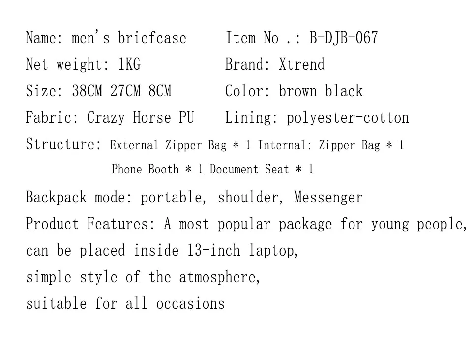 Material Composition:Crazy Horse Leather