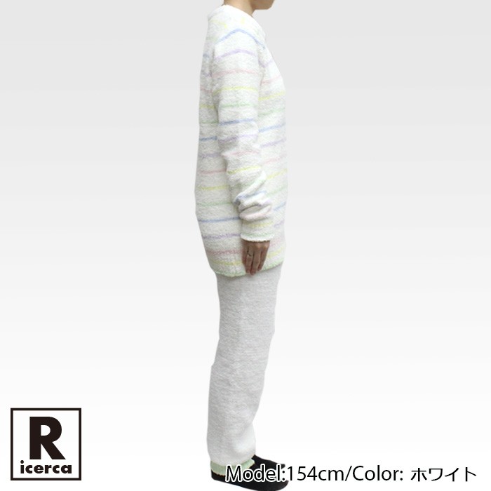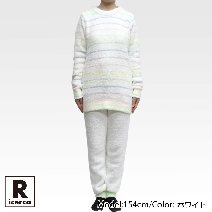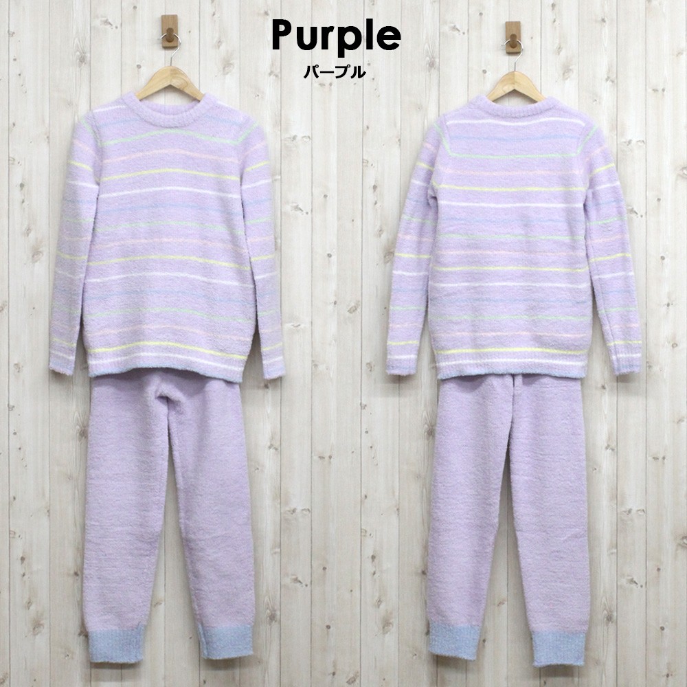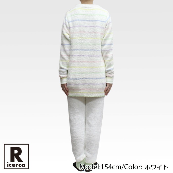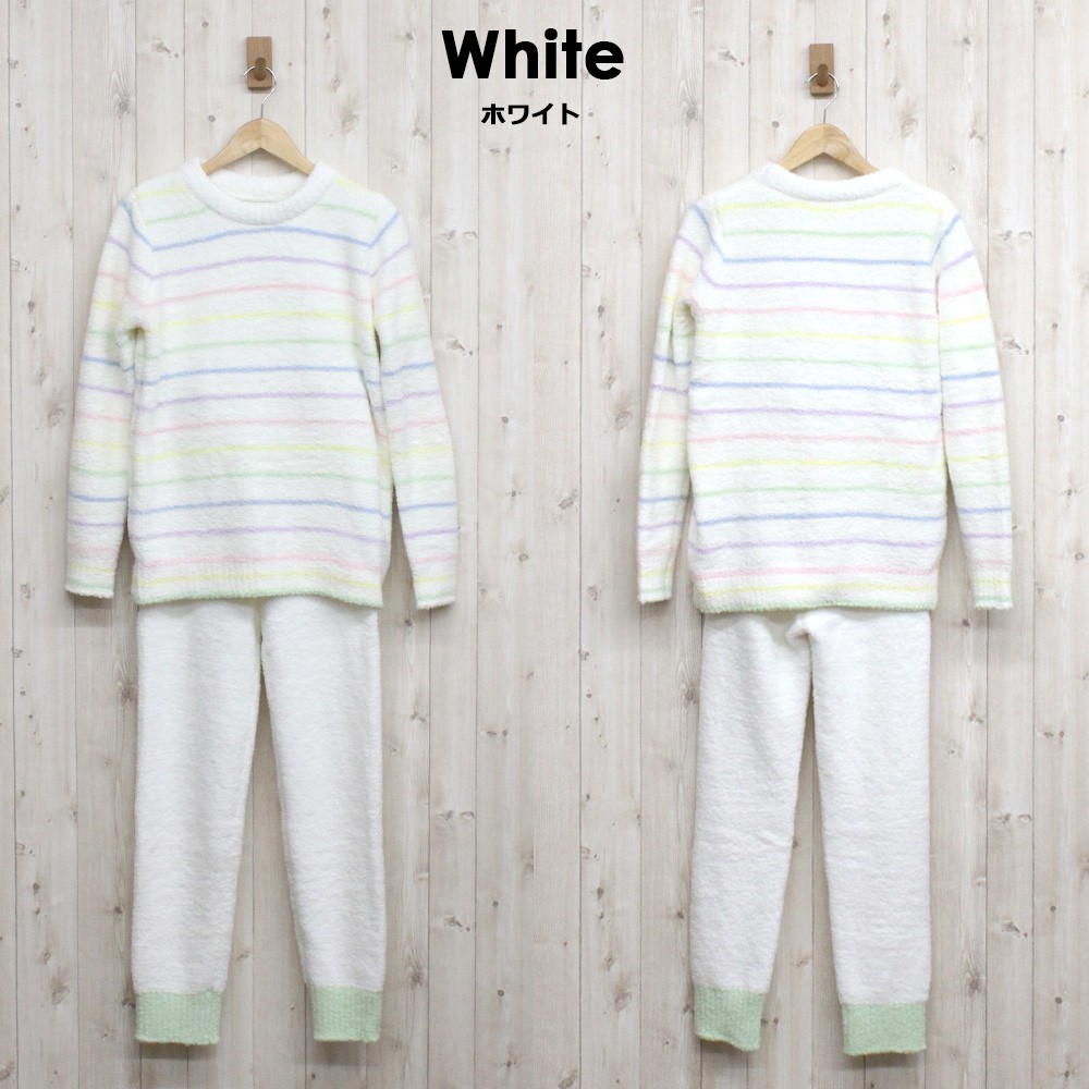 パステルカラーと細めボーダーが優しい印象の、もこもこルームウェア。