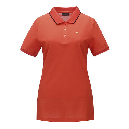 - 카라 라인 배색 디테일의 스포티한 여성 티셔츠.