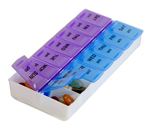 14 Compartments Pill Organizer Box, Medicine Remainder with Snap Lids| 7-day AM/PM for Pills, Vitamins. (14 Compartment) by Inspirations