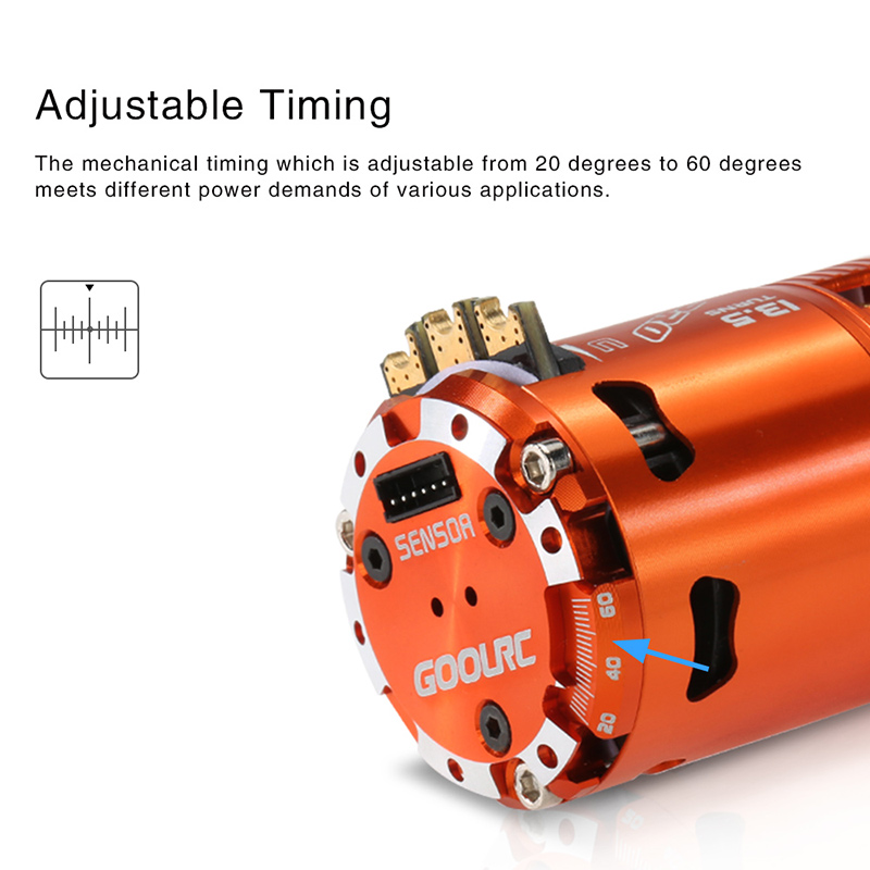 The original GoolRC high performance 540 13.5T SPEC 3050KV sensored motor is designed to provide both quality and performance at an affordable price, which meets IFMAR / ROAR rules. Compatible with sensored/sensorless ESC. Adjustable timing that you can change the motor RPM and torque when needed.