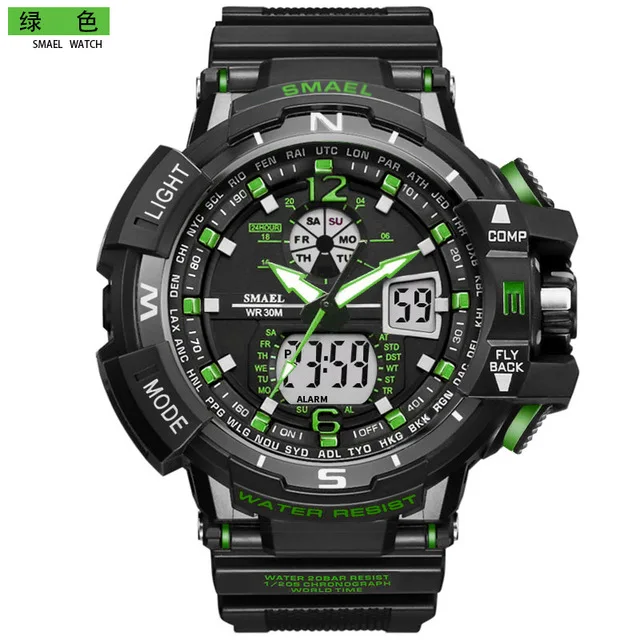 Feature:Alarm,Back Light,Water Resistant,Luminous,Multiple Time Zone,Chronograph,Shock Resistant,Repeater,Stop Watch,Auto Date,LED display,Diver