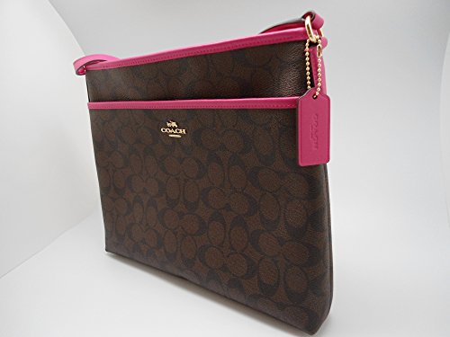 -. Feature : Signature coated canvas, Outside slip pocket / Inside zip, cell phone and multifunction pockets / Zip-top closure, fabric lining, Outside slip pocket / Adjustable strap with 21 3/4" drop for shoulder or crossbody wear / 11 3/4" (L) x 10 1/4" (H) x 2" (W)
