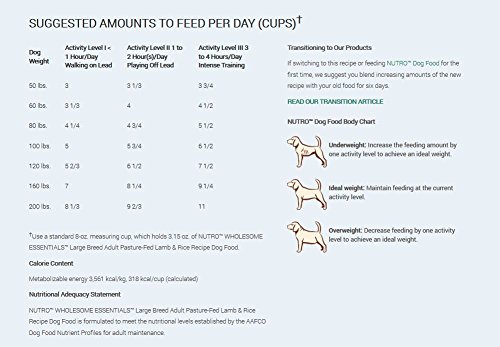 NUTRO WHOLESOME ESSENTIALS Large Breed Adult Pasture-Fed Lamb & Rice Recipe Dog Food always starts with pasture-fed lamb as the first ingredient and contains high-quality nutrients like glucosamine and chondroitin. This dog food is crafted to support healthy joints and help keep your large breed dog trim and fit. NUTRO Food for Dogs always follows the THE NUTRO FEED CLEAN philosophy, is always made with Non-GMO* Ingredients and is made with no artificial flavors, colors or preservatives. *Trace amounts of genetically modified material may be present due to potential cross contact during manufacturing.