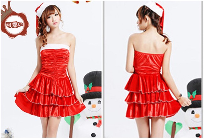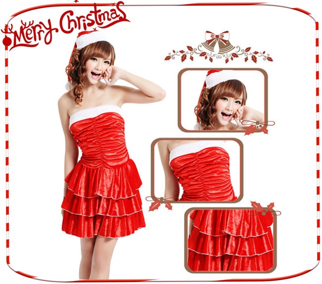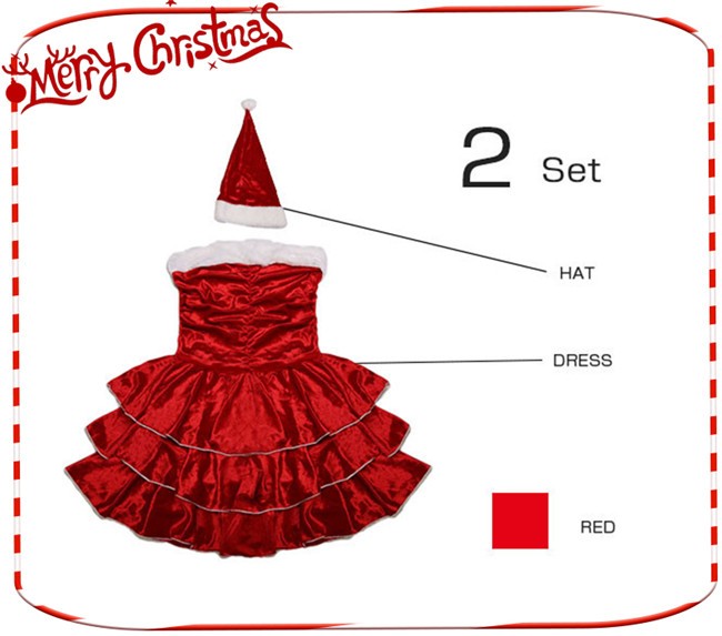 サンタ コスプレ セクシー レディース クリスマス 衣装 ギャザー入り aライン ティアード ワンピース 帽子 コスチューム サンタコス 仮装 変装 女性 大人 服 セットアップ かわいい サンタクロース パーティーグッズ イベント用品 余興 xmas Christmas cos