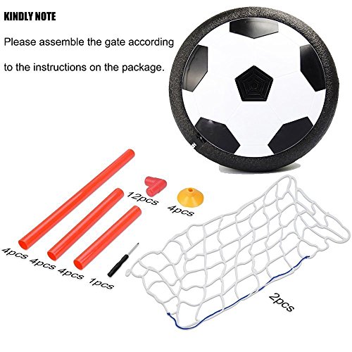 ?Bdwing Kids Toys Soccer Goal Set with 2 Portable Goal-- A creative new way to play soccer and air hockey all in one game! Add to Box and express your love to your little! Features: ?With portable gate: your kids can set up the goal and play it like a real soccer activities with he/her friends. The air soccer With the modest size which is similar to Size 4 soccer. Neither too big nor too little. More suitable for multiplayer game. ?It is a nice toy for family playing together and multiplayer game. ?To cultivate child's interest, enhance child's curiosity, play it in big family to enhance the feelings between them. ?The Air Power Soccer Disk is an amazing new disk that turns nearly any smooth surface into a sports court, inside or out. ?Use it on a low-pile carpet, hardwood floor, sidewalk or a driveway! As long as you have a flat surface, there's no end to the ways you can play. ?It has a powerful hover action that makes the Air Power Soccer Disk literally float on a cushion of air. ?The disk's outer protective bumper safely protects furniture and walls while allowing for great rebounding! Specification: Recommended Age:3 - 15 years Material: Non-toxic plastic Battery: 4 * AA batteries (Not included) Package details: Product size:18.5*18.5*6.8cm color box size:19.5*7.5*19.5cm How it works: 1.Set up the portable goal, there are diagrams on the color box. 2.Install 4 "AA" batteries on the bottom of the disk. 3.Flip the power switch, put it on a smooth surface and give it a little kick! You can kick it like a real soccer ball. 0 |