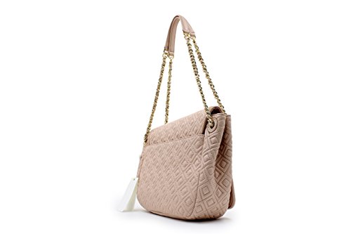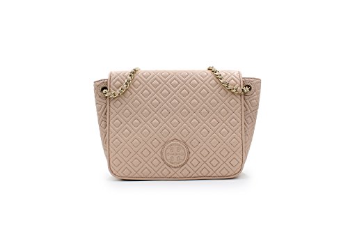 -. Brand : Tory Burch -. Department : womens -. Feature : Leather / Foldover flap with magnetic snap closure. / Leather and chain adjsutable straps with 18.73" (47 cm) drop. / Exterior back slit pocket. / 7.97"X9.56"X3.39" -. ProductGroup : Shoes -. ProductTypeName : HANDBAG -. Title : Tory Burch Marion Quilted Small Flap Shoulder Bag A graphic tonal logo meets intricate detailing. Our new Marion Quilted Small Flap Shoulder Bag is made of super-soft leather, accented with an adjustable chain strap that can be worn two ways: doubled up or long and swingy. Featuring several pockets to keep essentials organized - including a convenient center zip compartment that can fit a phone and a wallet - it's a versatile style that can carry you from day to evening, effortlessly.