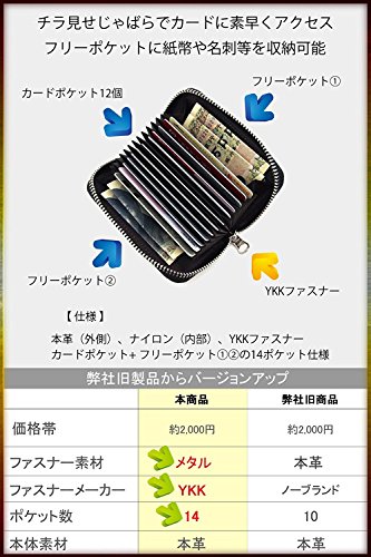 컬러 드《나》 CARADONA 소가죽 크레디트 카드 케이스 대용량 패스너 개량판 14포켓 그러면 장미 가죽 레더