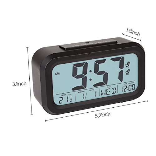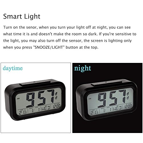 - Title : Peakeep® Dual Alarms Easy to Set Streamlined Smart Light Activated LCD Digital Alarm Clock with Snooze Function, Optional Weekday Alarm Mode and Sensor Light(Black)