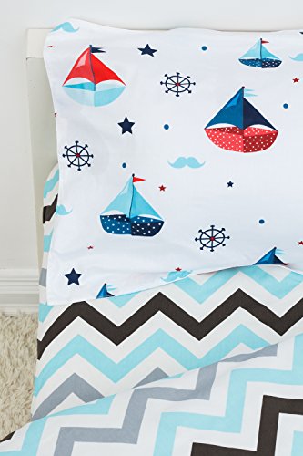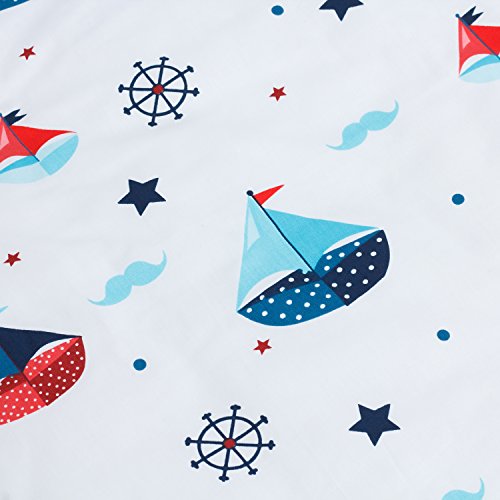 The lively, cheerful colors simple, designed cartoon pattern of boats and zigzag offer an ideal bedding decor for your precious baby boy.
