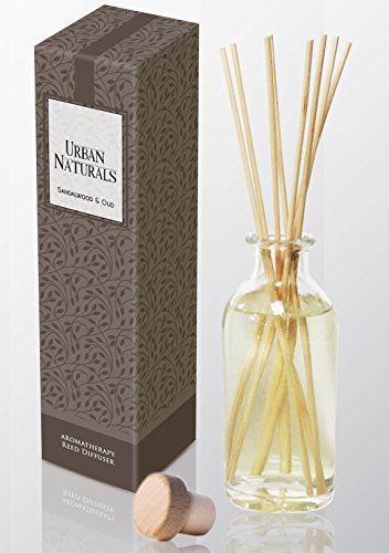 Sandalwood Reed Diffuser Set by Urban Naturals| Exotic Woody Scent | Oud, Vetiver, Patchouli & Neroli | A Gift Idea for Dad, Mom, Wife, Husband or Girlfriend!