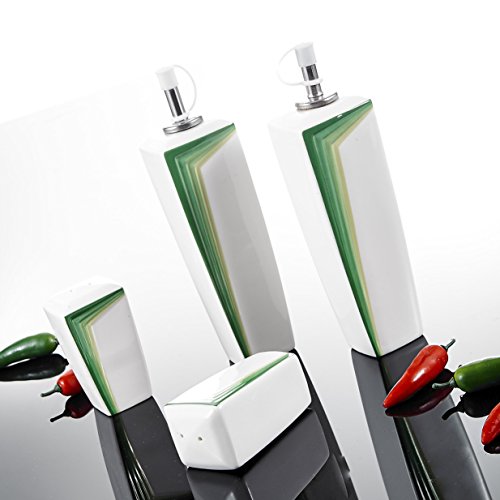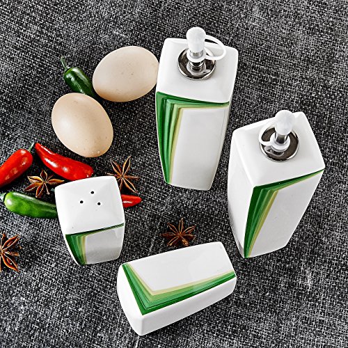 Malacasa, Series Rebeca, 4-Piece Ivory White Porcelain Cruet Set 6.25" Oil Vinegar Dispenser L*W*H: 5.5*4.5*16cm Weight: 228g 3.25" Salt Pepper Shaker L*W*H: 4.5*4*8.5cm Weight: 112g Package Content 2 * Oil Vinegar Dispenser 2 * Salt Pepper Shaker Made of Healthy and Durable China Porcelain, Harmless to Body Health, the Use of Safety. Simple Style Design Easily Matches with Existing Flatware in Your Kitchen, Dinner Essentials Set. Great for Home, Restaurants, Hotel and Cafes Use. Ideal for Everyday Use or any Special Occasions. Fired in high temperature, not easy to be broken. Safe in Freezer, Dishwasher and Microwave, Easy to Clean. 0 |