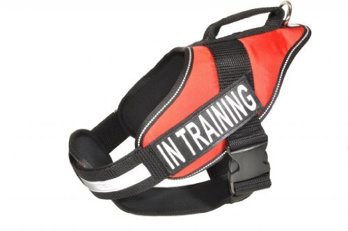 Studio : Dogline Publisher : Dogline Binding : Misc. Product Description Dogline Alpha Multipurpose Pet Dog Nylon Harness with Removable Chest plate and In Training Dog Velcro Patches. These harnesses are perfect for In Training dogs, In Training dogs, medical alert dogs, law enforcement and a lot more. These harnesses can be used for walking, biking, hiking, tracking, hunting; various support tasks and a lot more. These harnesses are made of durable breathable nylon with neoprene lining. Machine washable and weather resistant materials make this harness low maintenance and very practical in all life situations. These harnesses come with removable chest plate to provide maximum comfort for the dog. Chest plates and trim around the harness are reflective for maximum safety. EZ Grab handle provides total control of the dog in any situation. These harnesses come in 2 different colors and 4 sizes. Please measure your dog's girth behind front legs at the widest point before ordering. Small 18"-25", Medium 22"-30", Large 28"-38", X Large 36"-46". Small and Medium harnesses come with 1.5" wide nylon reflective chest plate and strap. S and M harnesses fit patches 1.5" x 4". Large and X Large harnesses come equipped with 2" nylon reflective chest plate and strap. L and XL fit patches 2" x 6". 0