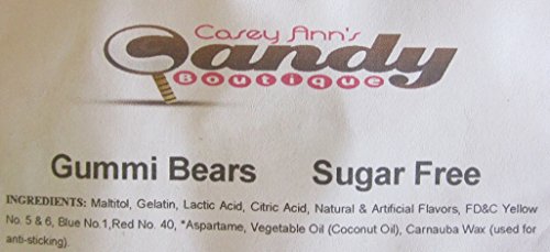 -. Binding : Misc. -. Brand : Casey Ann's Candies -. EAN : 0610696524577 -. Feature : Gummi Bears Candy Sugar Free 1lb Bag / We pack our Candy only after it is ordered to stay nice and fresh for you. / 1 Pound! Great Retro Candy! All orders shipped UPSP P.R.Iority Mail! / We use only FDA and USDA compliant Clear Poly bags that are heat sealed! / We sell hundreds of pounds of candy a week so all our candy is extremely fresh! -. Label : Haribo -. LegalDisclaimer : Our candy is purchased in bulk from manufacturers and then packaged in only FDA and USDA compliant Clear Poly bags that are heat sealed! -. Manufacturer : Haribo -. ProductGroup : Grocery -. ProductTypeName : GROCERY -. Publisher : Haribo -. Studio : Haribo -. Title : Gummi Bears Candy Sugar Free 1lb Bag -. UPC : 610696524577