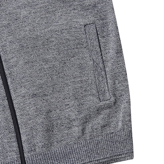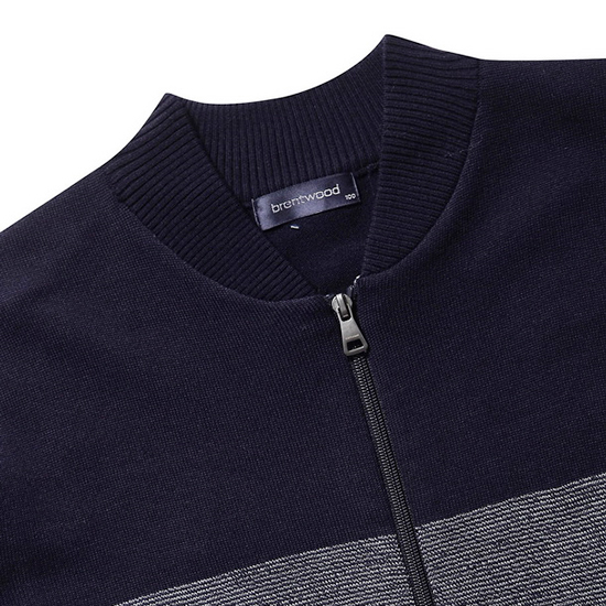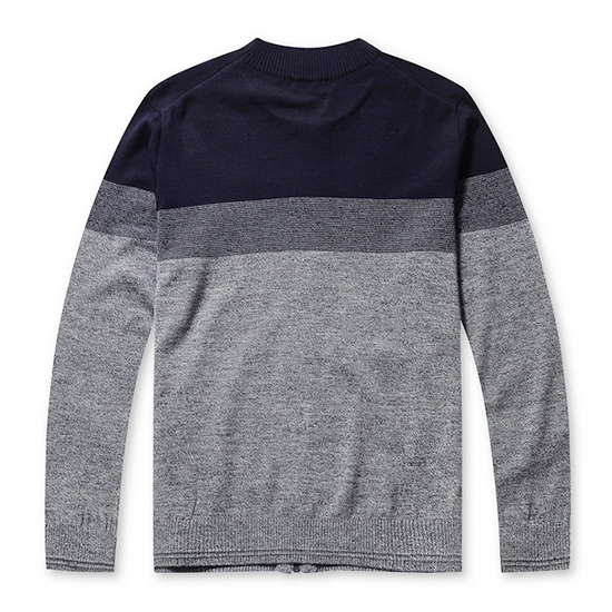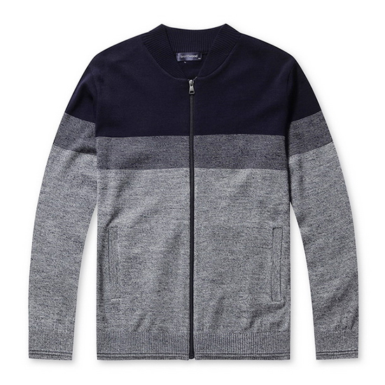 - 은은한 잔조직을 적용한 블럭 패턴의 남성 니트 가디건.
