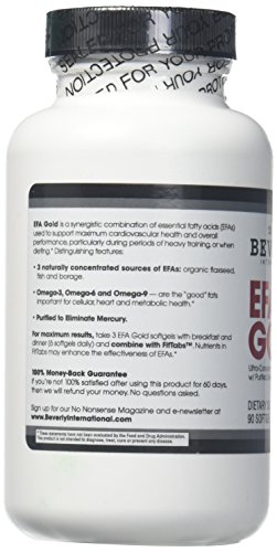 ReleaseDate : 2017-05-30 Studio : Beverly International Publisher : Beverly International Binding : Health and Beauty Product Description We're proud to say that many Beverly products have been used and recommended by professional trainers across the nation. But it's not often you hear about an essential fatty acid (EFA) supplement getting such an accolade. Trainers tell us that they feel confident touting EFA Gold because it delivers on completeness, potency and purity. Each easy-to-swallow soft gel is loaded with purity-tested omega-3, omega-6, and omega-9 fatty acids.? 0