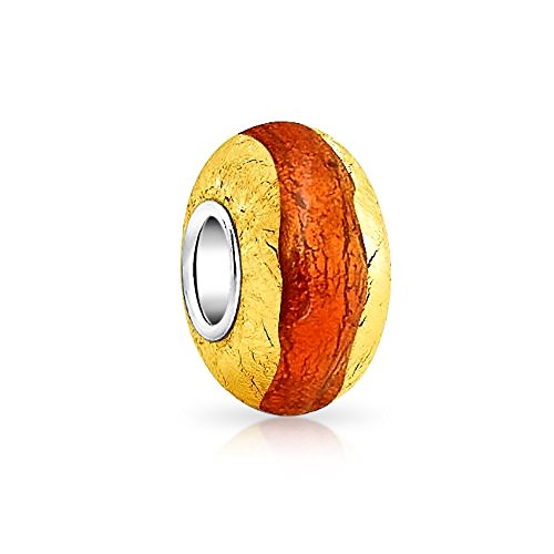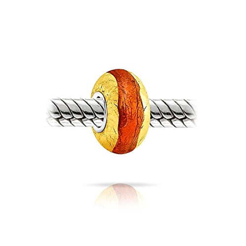BLING JEWELRY STERLING SILVER ORANGE SIMULATED CITRINE GOLD FOIL BEAD FITS PANDORA