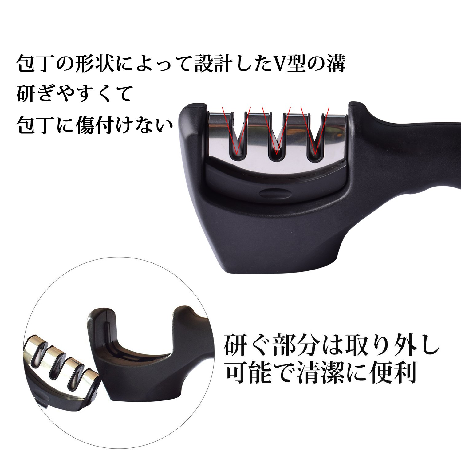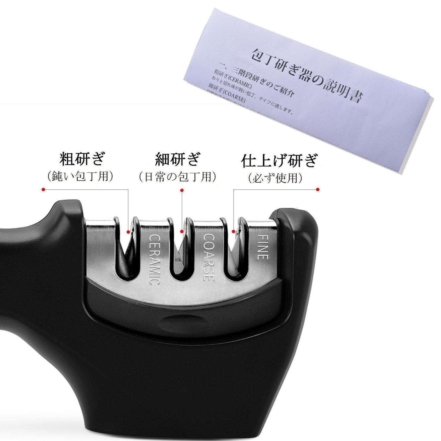 You can sharpen the stainless steel kitchen knife by three stairs, ceramic canvas can be ground just by finish sharpening