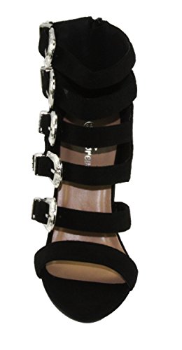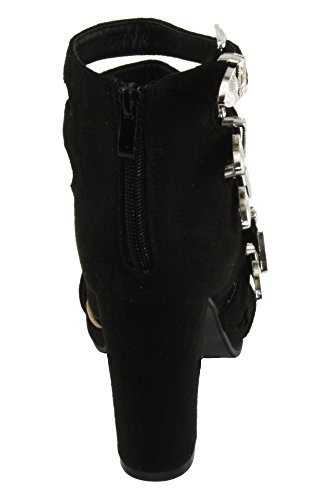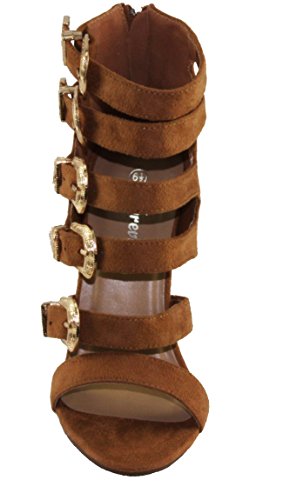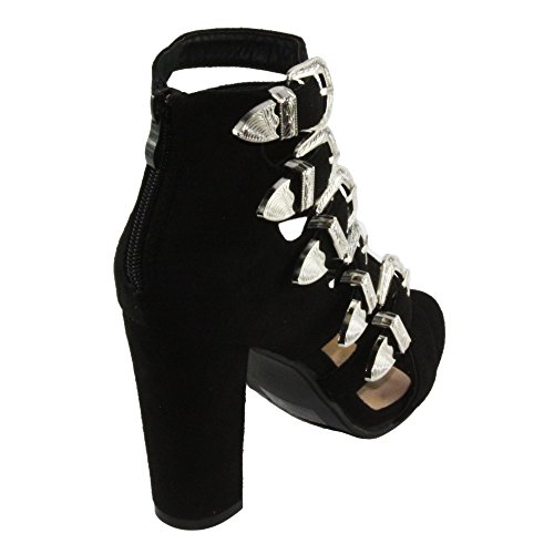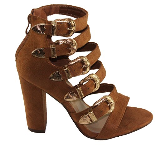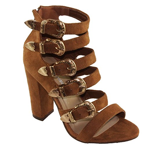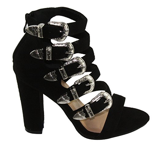Product Descriptionwomen's high heel sandals. every buckle is adjustable for best fit, faux suede upper, back zip closure for easy on and off, chunky heels.0