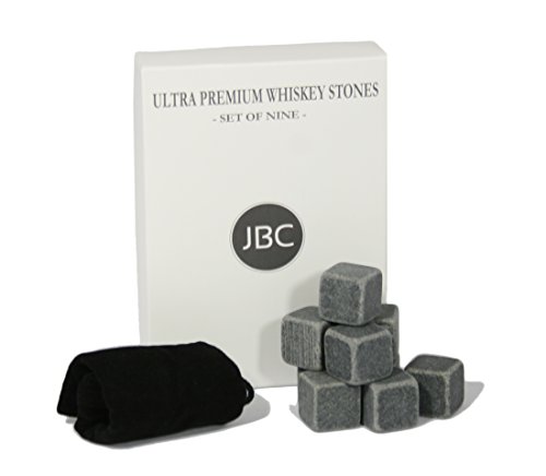 -. Title : JBC Premium Whiskey Stones - 100% Natural Chilling Stones - Gift Set of 9 pcs - Comes with Velvet Bag for Freezer Storage