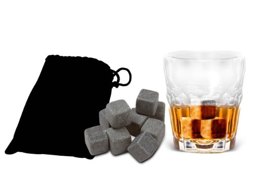 -. Feature : Contains Nine Chilling Stones Made from Natural Soapstone. / Chill Your Drink while preserving its flavor and not watering it down. / Store in Your Freezer, Ready to Use in Just Hours / Perfect for Whiskey, Vodka, Wine, Cocktails or any other beverage. / No mess and reusable, comes with velvet carrying pouch.