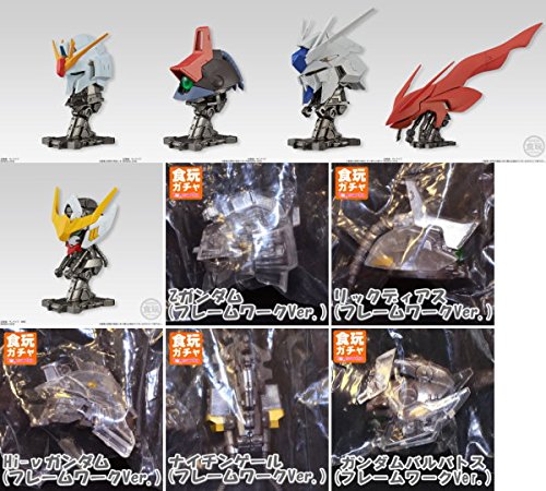 약26mm크기가 정밀한 건담의 머리 부분 피규어 콜렉션입니다.통상 컬러ver.와 frameworkver.(클리어 성형)의 2패턴의 컬러 바리에이션이 있고, 같은 모빌 슈트를 다른 이미지에 디스플레이 가능합니다.더욱 더「Hi-ν건담」「Z건담」「건담발바토스」서는 외장 파트 위치의 바꿈에 의한 기갑 전개 상태의 재현,「릭 디아즈」서는 파트 가동+일부 바꿈에 의한 발칸 파라오《구스》발사 상태의 재현,「나이팅게일」서는 파트 가동에 의한 cokepit 패치 오픈 상태의 재현,와 통상의 헤드 모델에는 없다+α의 플레이 밸류가 있습니다.
