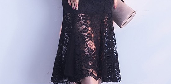 ひざ下からのレース使いも華やかさにエレガントをプラスしてくれる一着◎