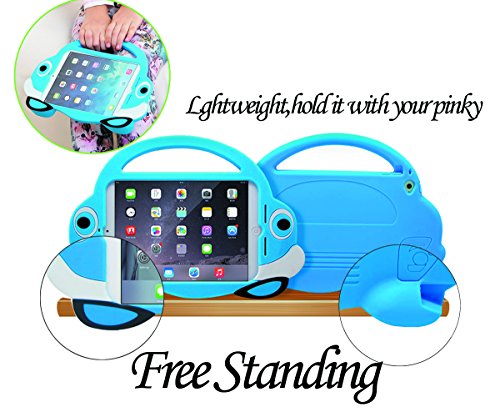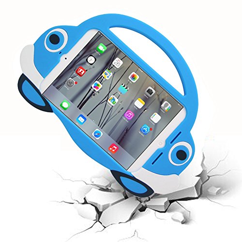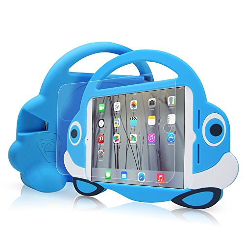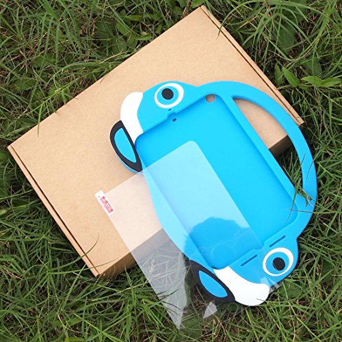 [2016 Newest Version]Ipad Mini Case,TopEs Kids Fun Mini Cartoon Shockproof Silicone Protective Case Cover+(Tempered Glass Screen Protector) for iPad Mini, Mini 2, Mini 3 and Retina Models (Blue)