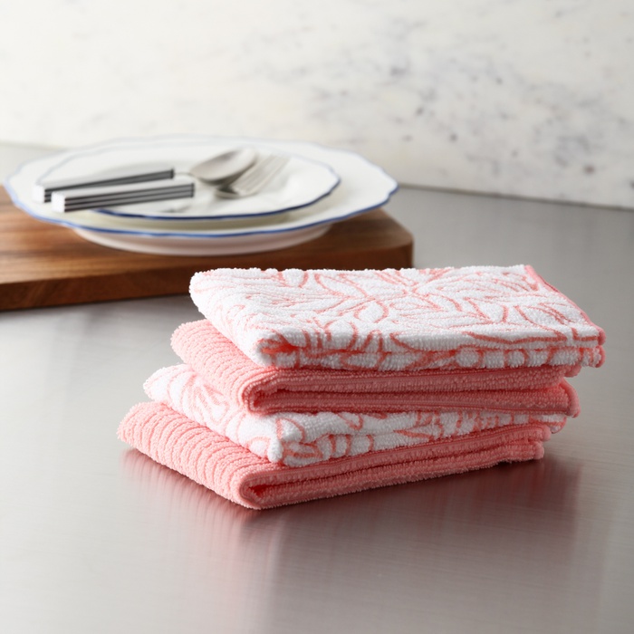 원본상품명: 【4枚セット】マイクロファイバ? ディッシュクロス リ?フ ピンク