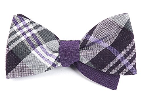 -. Title : The Tie Bar Linen Blend Crystal Wave Row Purple Self-Tie Reversible Bow Tie