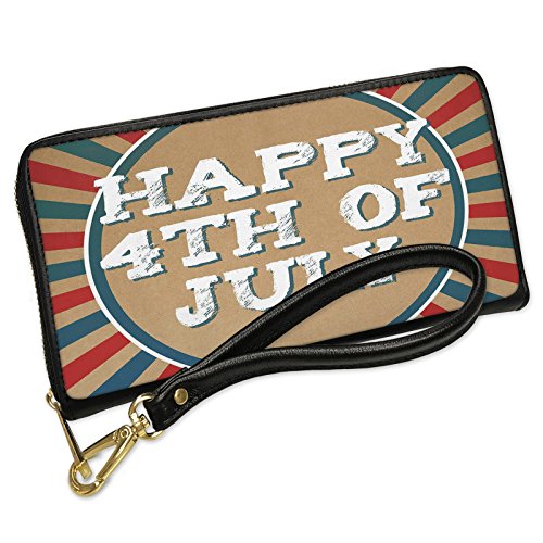(NEONBLOND)/Accessories/Wallets, Money Key Organizers/DIRECT FROM USA/Wallet Clutch Happy 4th of July Fourth of July Vintage Poster Design with Removable Wristlet St...