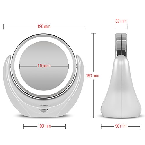 The Hangsun B99 LED light mirror has a 360 degree rotation and can be fixed at any angle. On one side there is a flat mirror and on the other side there is a 5x magnifying mirror. The mirror face is clean and clear with high definition, and has durable LED bead lights which makes it easy and convenient to use no matter whether day or night. It is also battery operated with 3x AA batteries, so there is no need for a cable (please note that batteries are not included in the package).