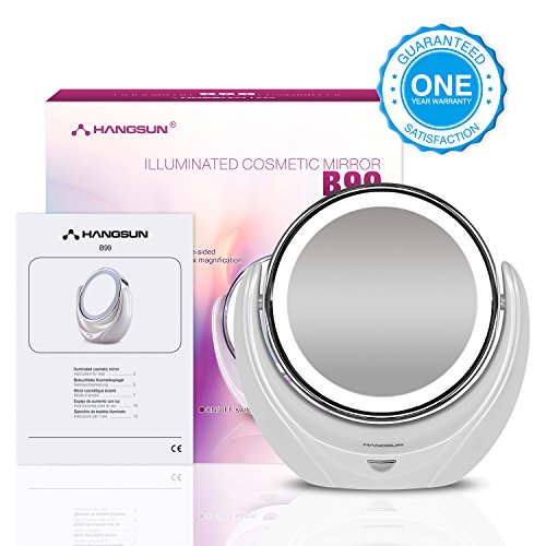 HANGSUN VANITY MIRROR WITH LIGHTS B99 LIGHTED MAKEUP MIRROR WITH MAGNIFICATION MAKE UP ILLUMINATED COSMETIC LED MIRROR DOUBLE SIDED BATHROOM MIRROR WITH 5X MAGNIFIYING