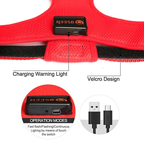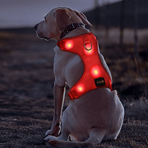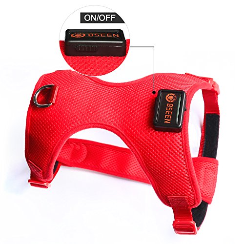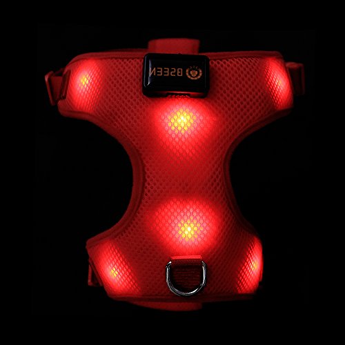 Features: ? Ultra soft and highly durable dog harness made from Non-Toxic Meshing and Polyester. ? Innovative No-Choke Design Protects Pet's Fragile Trachea and Throat with Extra Plush Piping Around the Neck Opening. ? Great for walking, running and all outdoor activities, hugs the dog with a flexible Air-Mesh which maintains your Dog's natural movements. ? Adjustable belt, double stitched around a reinforced anchor hook, and quick release clasps. ?The LED make pets be safe and be seen walk to avoid some potential traffic dangers in the dark. ?USB Rechargeable charging 2 hours could last for 8 hours for blink model or 3 hours steady glow.