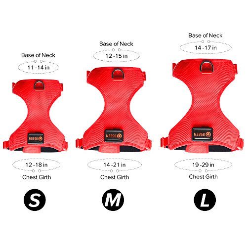Measurements: Our harnesses are a different and more innovative design, so please do not base sizing off of other companies sizing. Animals come in all shapes and sizes. Therefore, please measure to get an exquisite fit. ?Small: Base of Neck:12"- 16" 1/2 inch, Chest Girth:17" - 25" inch ?Medium: Base of Neck: 15" 3/4 - 21" 1/2 inch, Chest Girth: 21"1/2 - 31"1/2 inch ?Large: Base of Neck: 19"3/4 - 28" inch, Chest Girth:28" - 43" inch