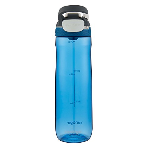 Studio : Contigo Publisher : Contigo Binding : Kitchen Product Description This easy one handed drinking water bottle provides a spout cover to protect against dirt and germs. So go ahead and start hydrating with the Contigo 24 oz. Cortland Autoseal Water Bottle.Easy to clean lid engineered to pop open completely to get to all the nooks and cranniesThe Autoseal technology lid is leak and spill proofOne-handed operation allows you to drink with a press of a buttonAutoseal button lock for an added peace of mindProtective spout cover keeps out dirt and germsClip on handle attaches to bags, gears, keys and moreConvenient volume markings for easy measuring and trackingFits most cup holdersTop rack dishwasher safe lid and bodyBPA free 0