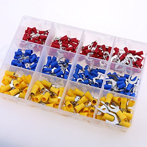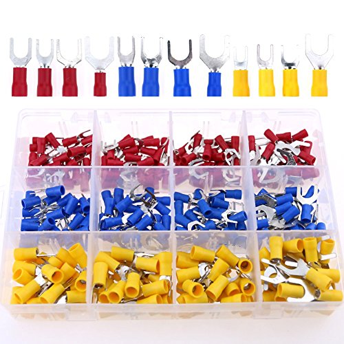 Glarks 240pcs 22-16 / 16-14 / 12-10 Gauge Fork Spade Quick Splice Crimp Terminals Connectors Assortment Kit