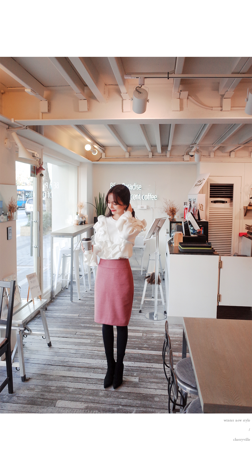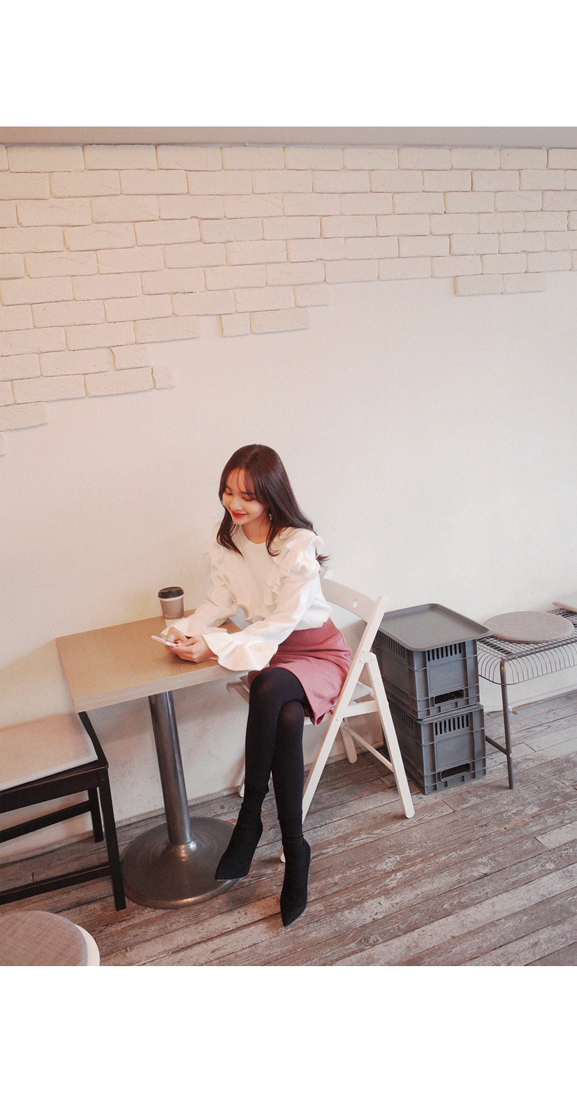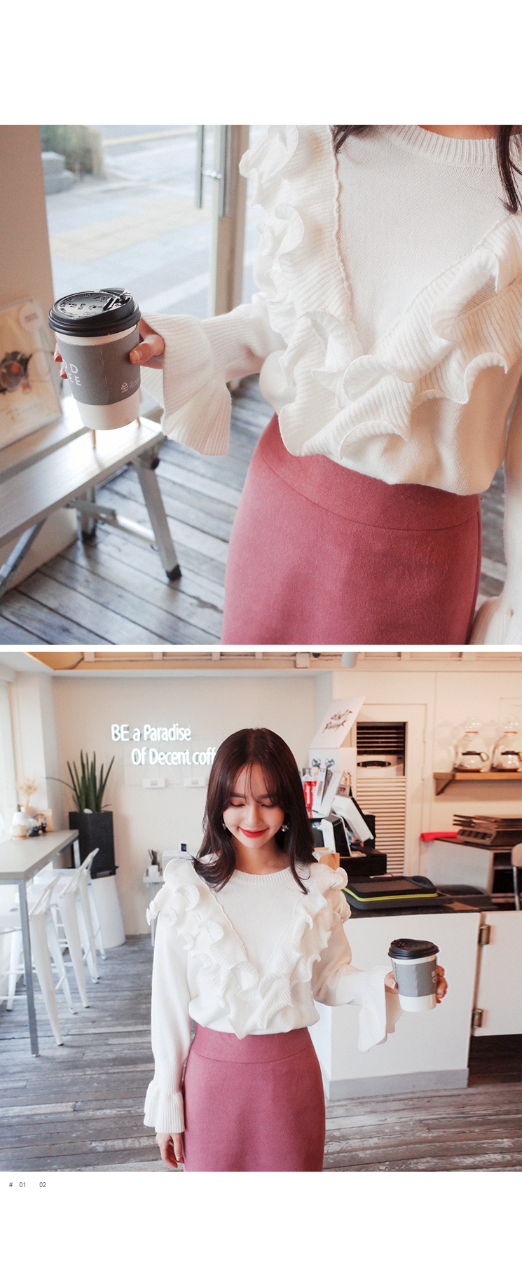 셔링스타일로 러블리한 느낌이 너무 예쁜 니트입니다