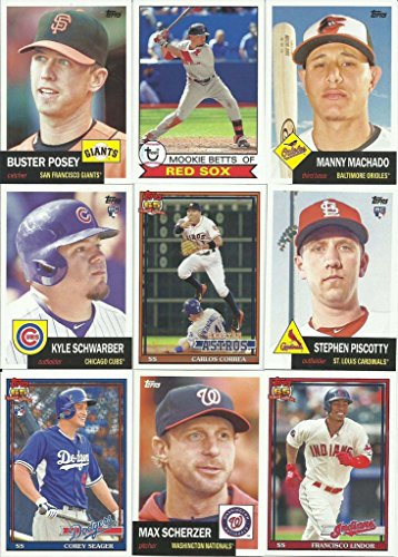 Players pictured in the 1953 design include George Brett, Dustin Pedroia, Albert Pujols, Robin Yount, Juan Marichal, Manny Machado, Ryne Sandberg, Brooks Robinson, Max Scherzer, Mark McGwire, Stephen Strasburg, Satchel Paige, Carl Yastrzemski, Duke Snider, Masahiro Tanaka and Buster Posey plus rookie cards of Kyle Schwarber, Miguel Almonte, Henry Owens, Trea Turner and Stephen Piscotty among others.