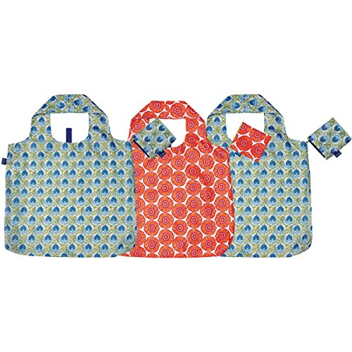 rockflowerpaper eco-friendly Isabella Blue and Bea Orange Blu Bag Pack of Three Reusable Grocery Shopping Bags Totes