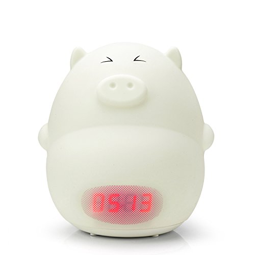 GoLine Alarm Clock Night Light, Cute Pig Soft LED Multicolor Wake Up Lamp for Kids Bedroom, 2 Alarms, 3 Sounds, 7 Colors, Tap Control, Temperature Display,...