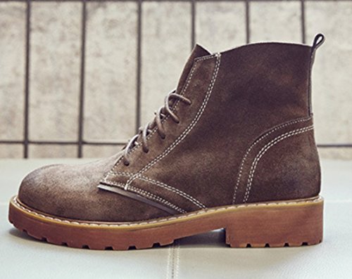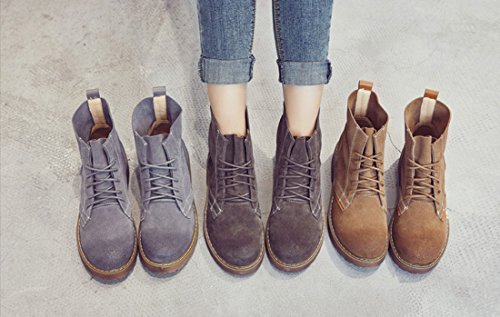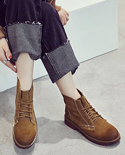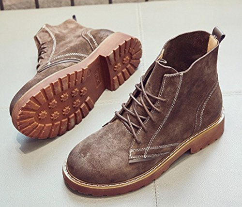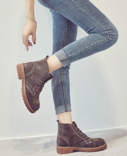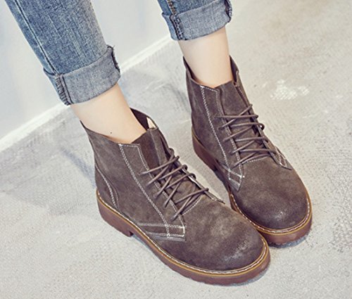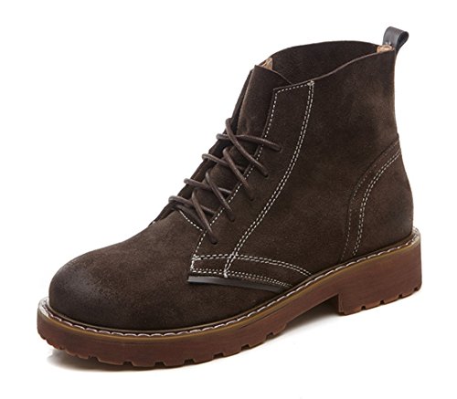 (TDA)/Women's/Boat Shoes/DIRECT FROM USA/TDA Women's Autumn Winter Lace-up Nubuck Leather Stitching Slide Ankle Low Top Boots