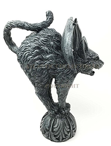 Bizarre Gothic Eureka Bat Winged Cat Gargoyle Figurine Sculpture Stoic Guardian Castle Top Stone Creature