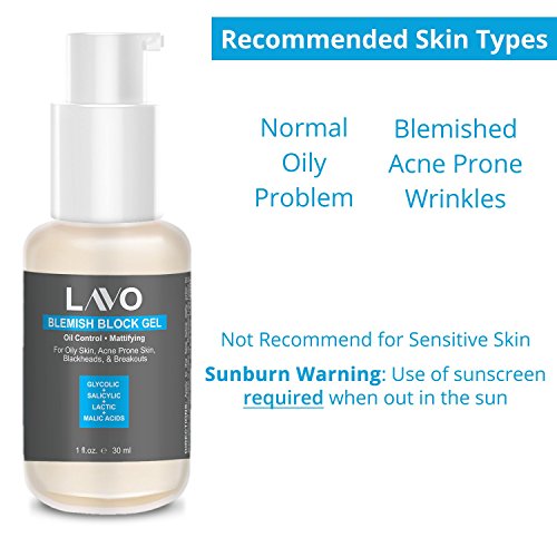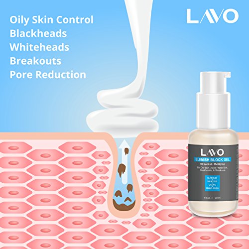 LAVO Blemish Block Gel How does it work? The Blemish Block Gel works by absorbing and regulating excess oil production from the pores.