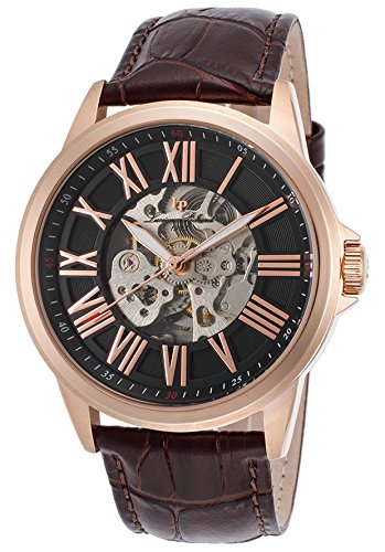 -. Title : Calypso Automatic Brown Genuine Leather Black Dial Rose-Tone Case